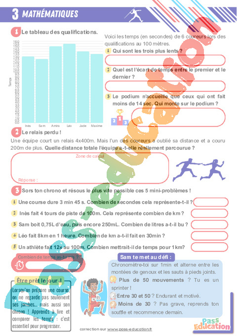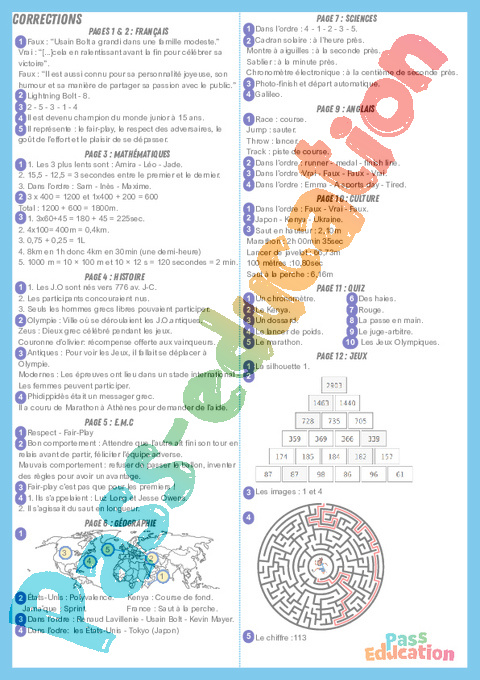 Correction L’athlétisme – Cahier de vacances : 4eme, 5eme, 6eme Primaire pdf