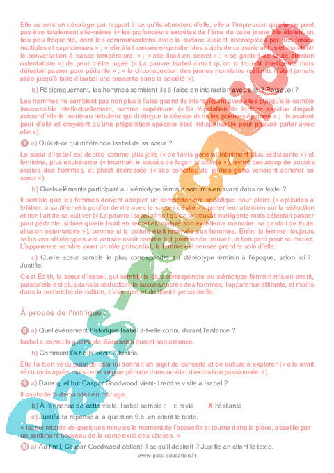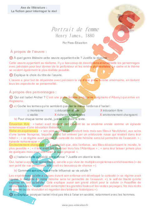 Correction Questionnaire Portrait de femme (Henry James) : 2eme Secondaire pdf