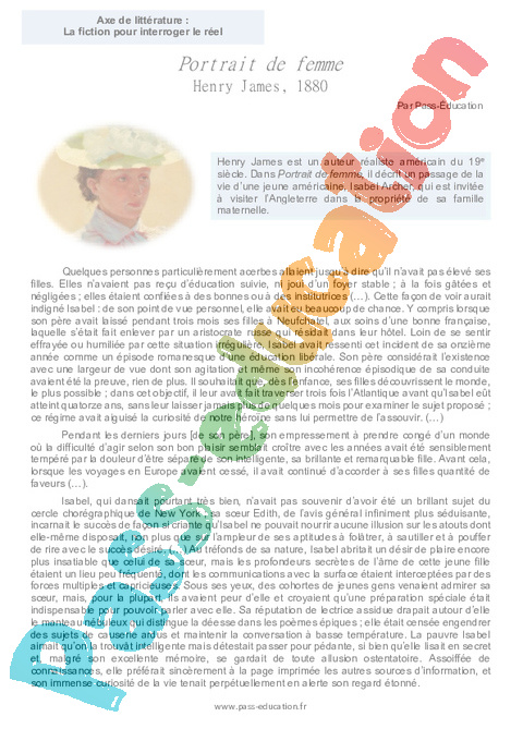 Lecture Portrait de femme (Henry James) : 2eme Secondaire pdf