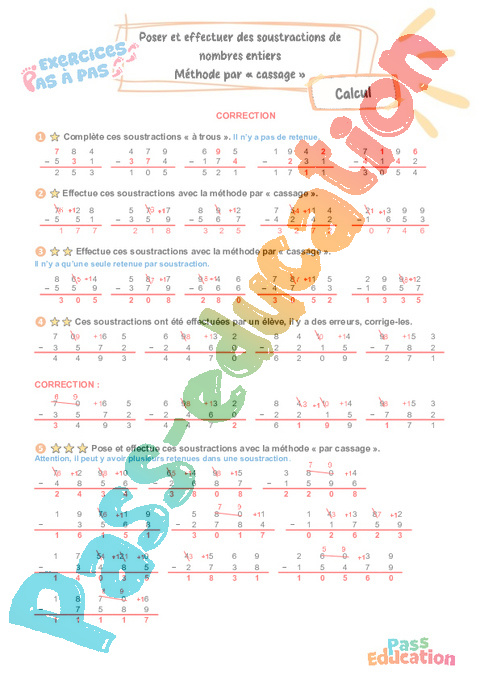 ❹ ⭐⭐ Ces soustractions ont été effectuées par un élève, il y a des erreurs, corrige-les.