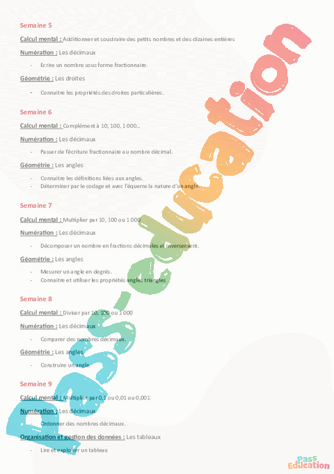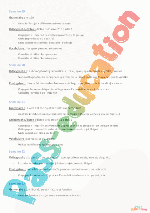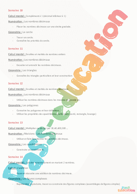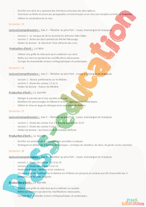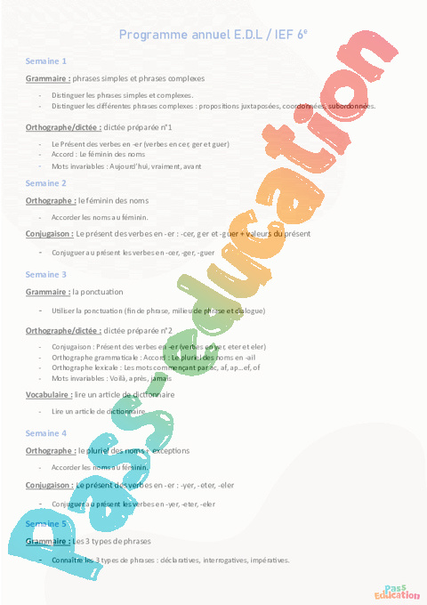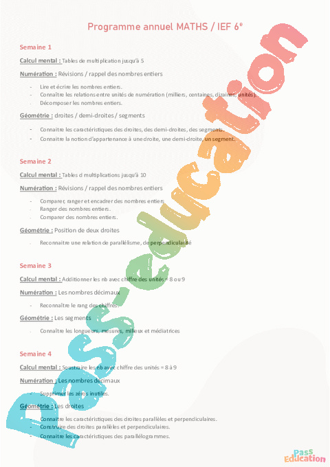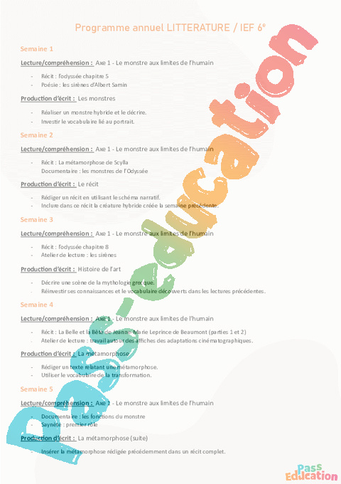 Programmes de l’année scolaire en IEF (EDL, Littérature, Mathématiques) – école à la maison : 6ème
