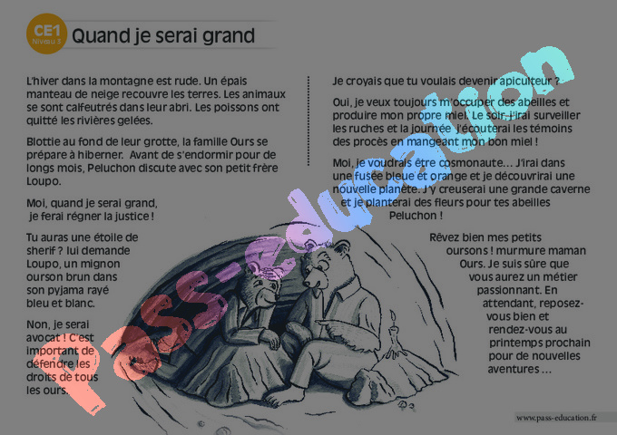 Quand je serai grand en 2eme Primaire – Lecture compréhension – Histoire illustrée – Niveau 3