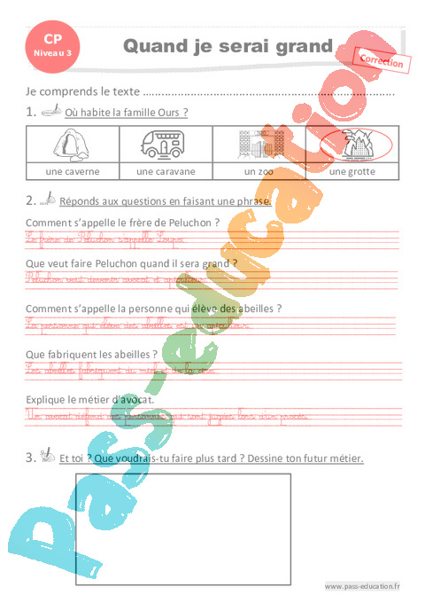 Correction Questionnaire Quand je serai grand : 1ere Primaire – Luminéo – Niveau 3 pdf