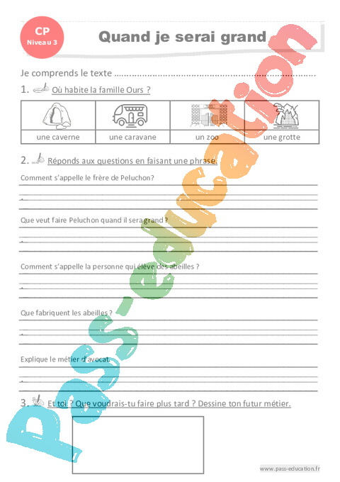 Questionnaire Quand je serai grand : 1ere Primaire – Luminéo – Niveau 3 pdf