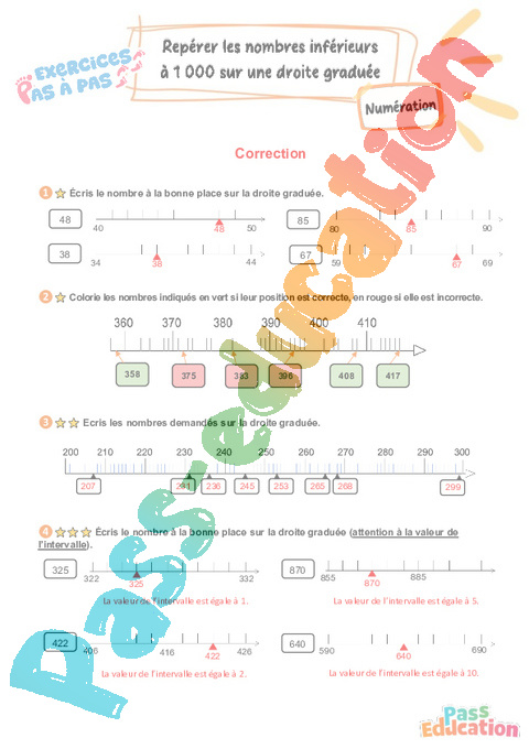 Repérer les nombres inférieurs à 1 000 sur une droite graduée : 3eme Primaire – Exercices Pas à Pas rtf