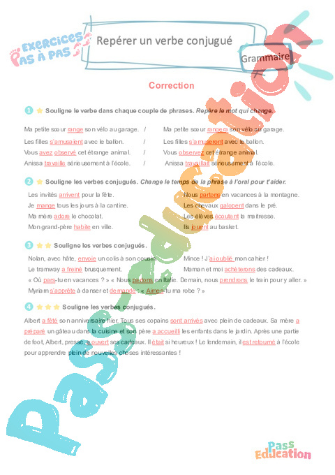 Correction Repérer un verbe conjugué : 3eme Primaire – Mémo + Exercices Pas à Pas pdf