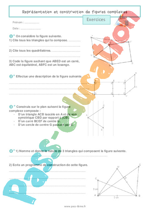 Exercices 6ème Représentation et construction de figures complexes pdf