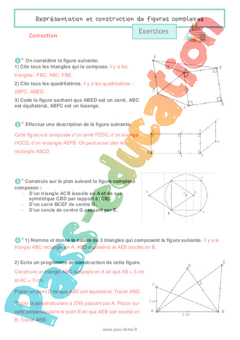 Exercices Correction 6ème Représentation et construction de figures complexes pdf