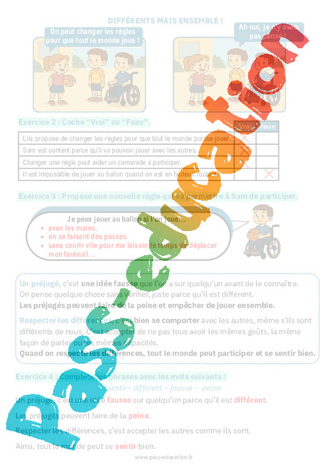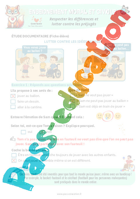 4. Correction Fiche élève Respecter les différences et lutter contre les préjugés : 2eme Primaire pdf