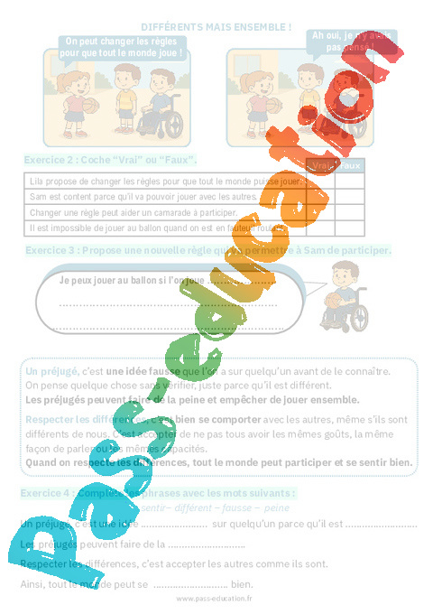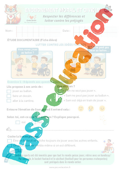 Exercices sur respecter les différences et lutter contre les préjugés : 2eme Primaire – EMC Education morale et civique.