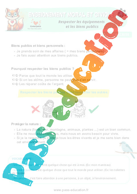 Leçon à imprimer sur respecter les équipements et les biens publics : 1ere Primaire – EMC Education morale et civique.