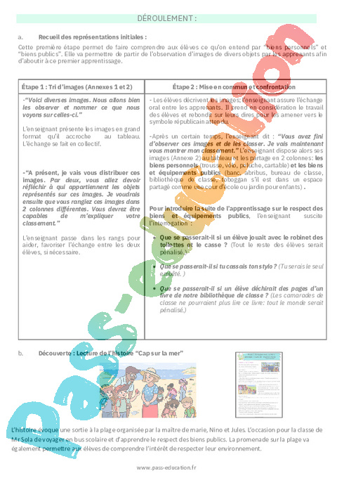 1. Fiche de préparation Respecter les équipements et les biens publics : 1ere Primaire pdf