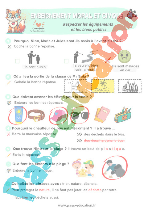 4. Correction- Fiche élève Respecter les équipements et les biens publics : 1ere Primaire pdf
