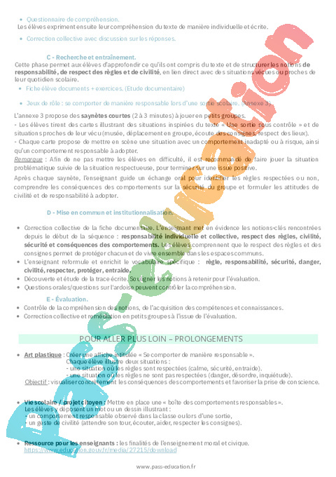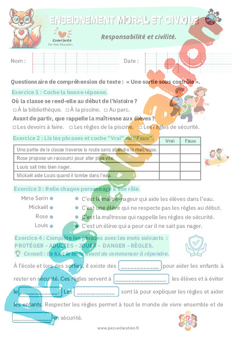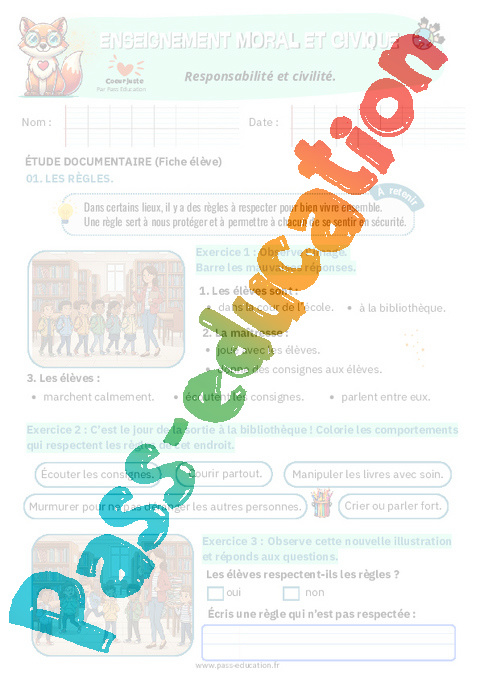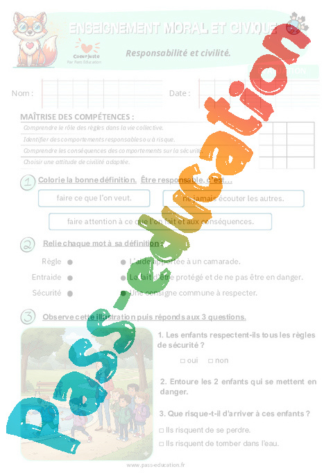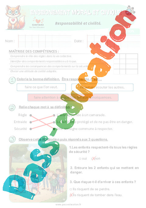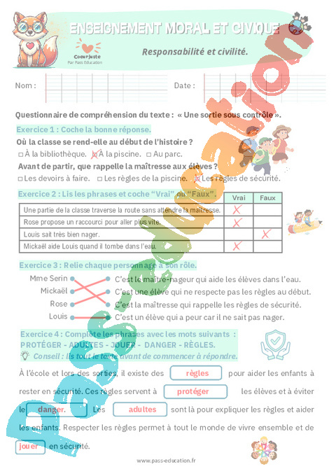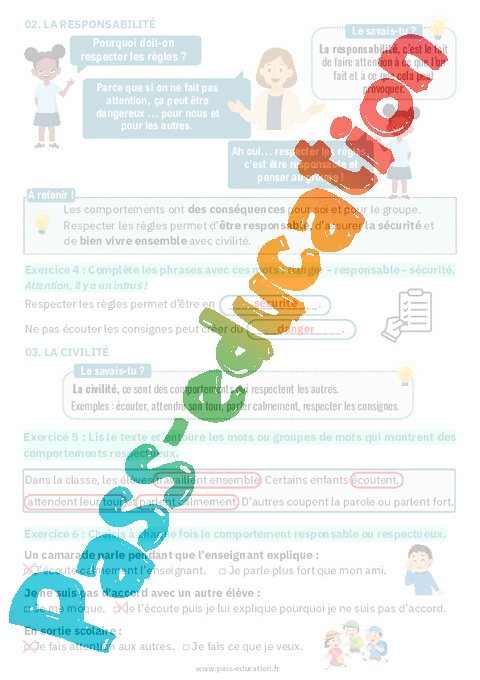 4. Correction Fiche élève Responsabilité et civilité : 2eme Primaire pdf