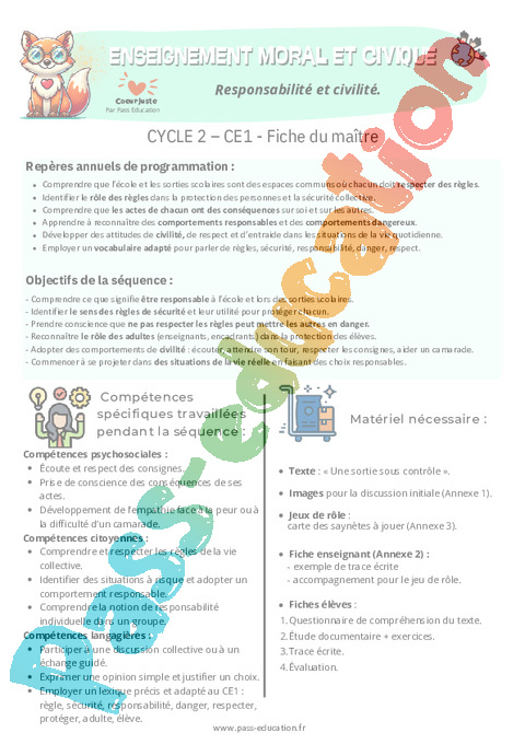Fiche de préparation – Responsabilité et civilité : 2eme Primaire – EMC Education morale et civique.