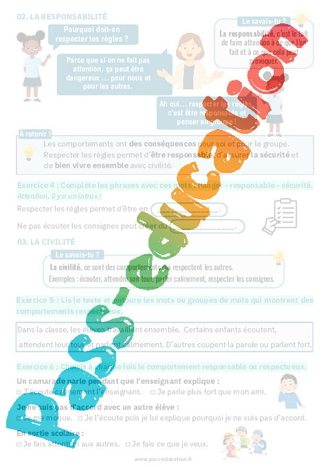 4. Fiche élève Responsabilité et civilité : 2eme Primaire pdf
