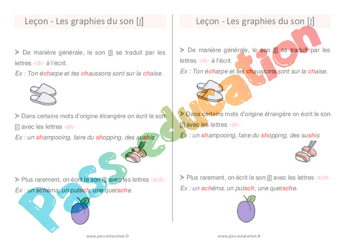 | Leçon à apprendre : Les graphies du son [ʃ] : ch ou sh |