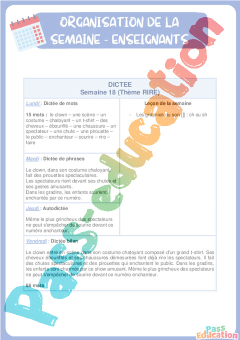 18. Semaine 18 Rire : 5eme Primaire – Dictée progressive hebdomadaire (n°18) rtf