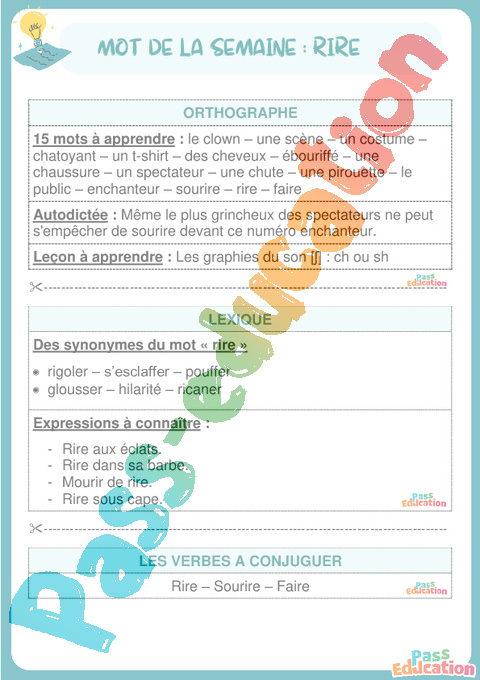 Dictée progressive hebdomadaire (n°18) en 5eme Primaire sur le thème de : Rire