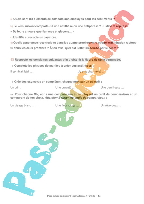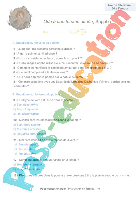 1 b Questionnaire – Ode à une femme aimée Semaine 1 – école à la maison IEF pdf