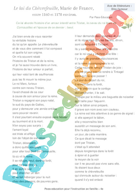 2 a Le lai du Chèvrefeuille Semaine 1 – école à la maison IEF pdf