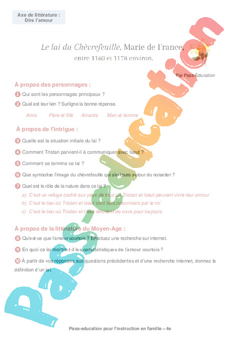 2 b Questionnaire Le Lai du Chèvrefeuille Semaine 1 – école à la maison IEF pdf
