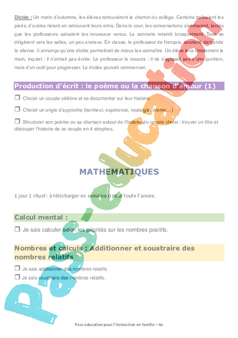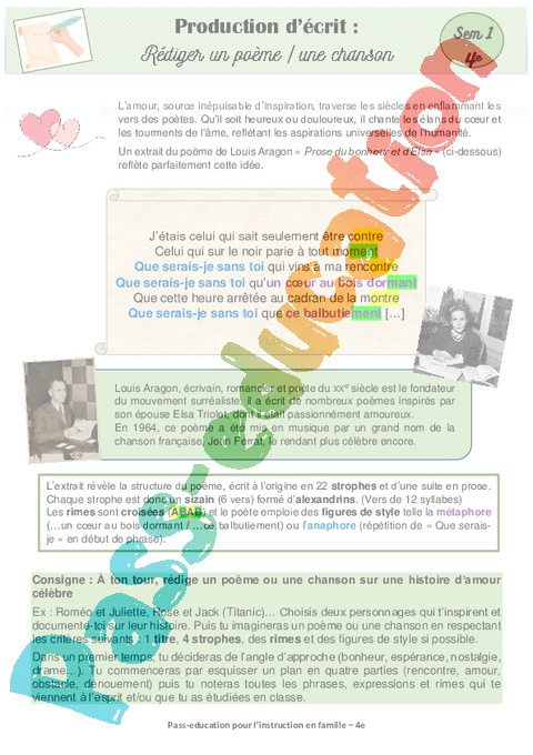 4 Production d’écrit – Expréssion écrite Poème ou Chanson d’amour Semaine 1 – école à la maison IEF pdf
