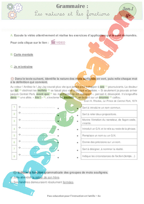 5 a Grammaire – Les natures et les fonctions Semaine 1 – école à la maison IEF pdf