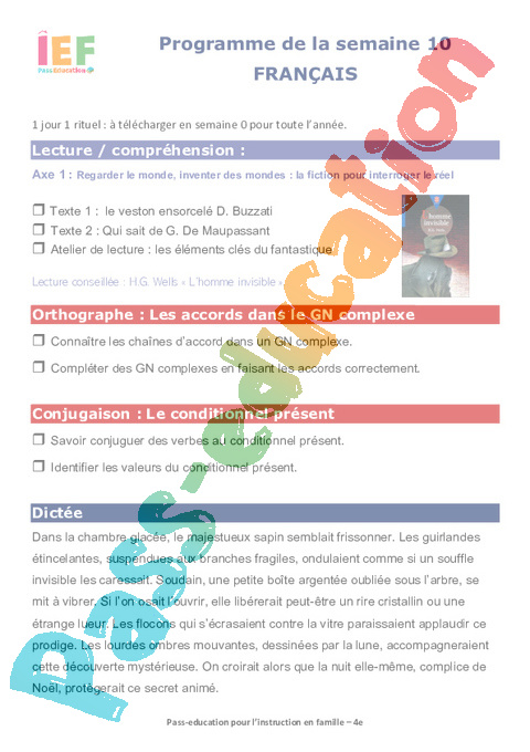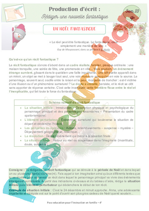 4 Expression écrite récit fantastique Noel Semaine 10 IEF : 2eme Secondaire pdf