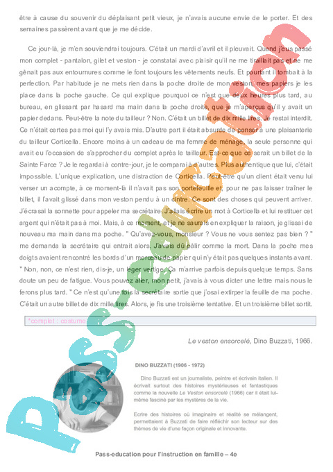 1a – Le veston ensorcelé – BUZZATI Semaine 10 IEF : 2eme Secondaire pdf