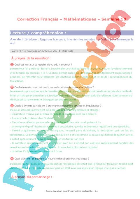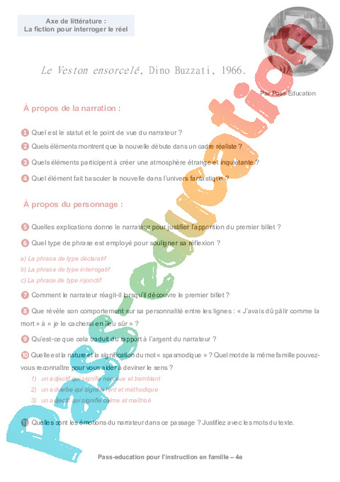 1b – Questionnaire Le veston ensorcelé – BUZZATI Semaine 10 IEF : 2eme Secondaire pdf