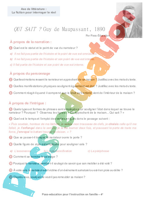 2b – Questionnaire QUI SAIT – MAUPASSANT Semaine 10 IEF : 2eme Secondaire pdf