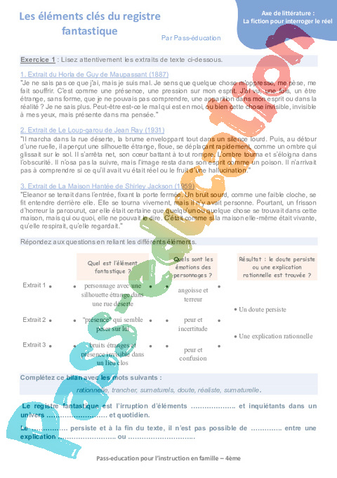 3 Atelier de lecture les caractגristiques du registre fantastique Semaine 10 IEF : 2eme Secondaire pdf