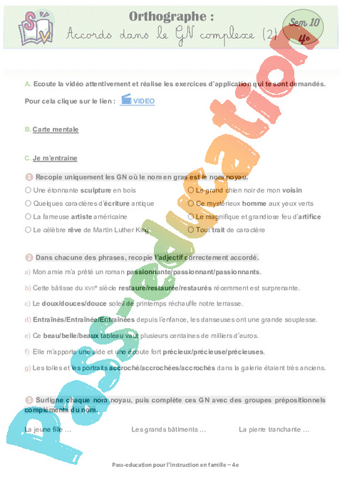 5 a Orthographe- Accords dans le GN complexe (2) Semaine 10 IEF : 2eme Secondaire pdf