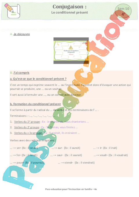 6 a Conjugaison- Le conditionnel présent Semaine 10 IEF : 2eme Secondaire pdf
