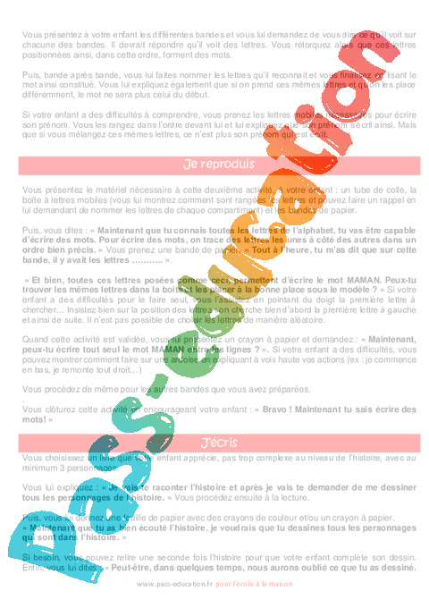 1a) Maternelle – Semaine 10 – Graphisme – Ecrire des mots-en capitale d’imprimerie – Notice parent pdf à consulter avant de commencer (sur écran)