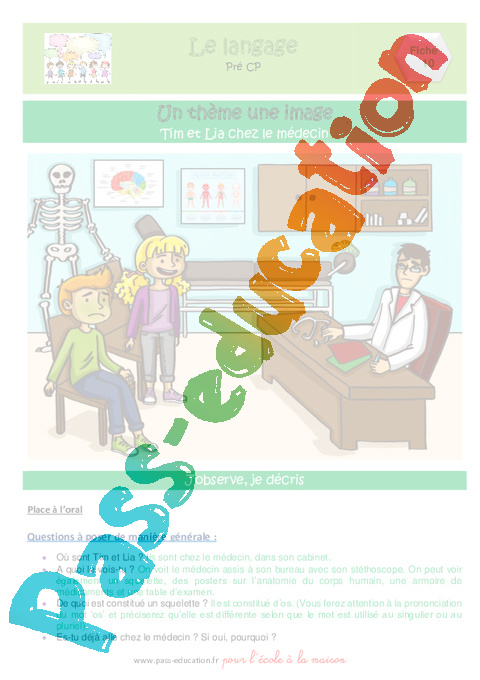 Langage : Vous pourrez abordez avec votre enfant le vocabulaire lié à chez le médecin ainsi qu’au corps humain