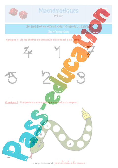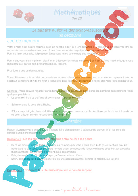 Mathématiques – numération : Je sais lire et écrire des nombres jusqu’à 7