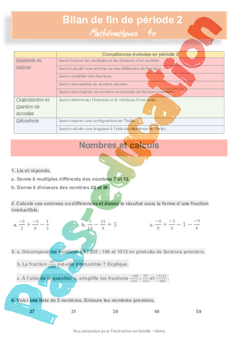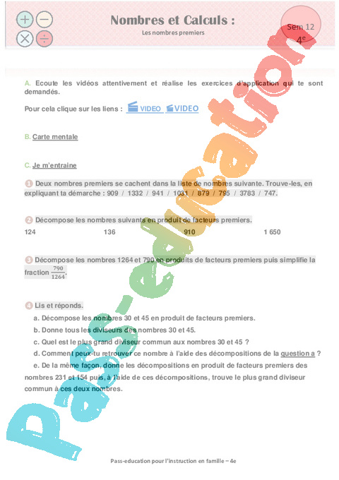 1 a Nombres et calculs : 2eme Secondaire Les nombres premiers Semaine 12 IEF pdf