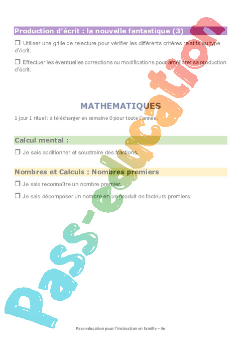 Semaine 12 – école à la maison IEF : : 2eme Secondaire