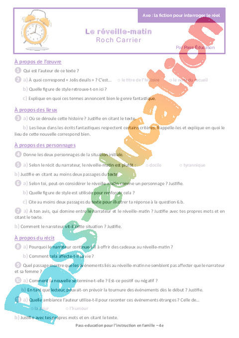 2 b Questionnaire Le réveille-matin Semaine 12 IEF : 2eme Secondaire pdf