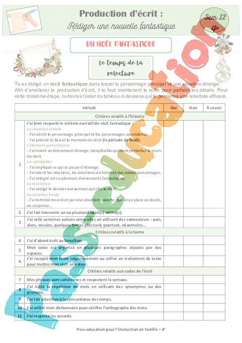 4 Expression écrite-fantastique-Noel-relecture Semaine 12 IEF : 2eme Secondaire pdf