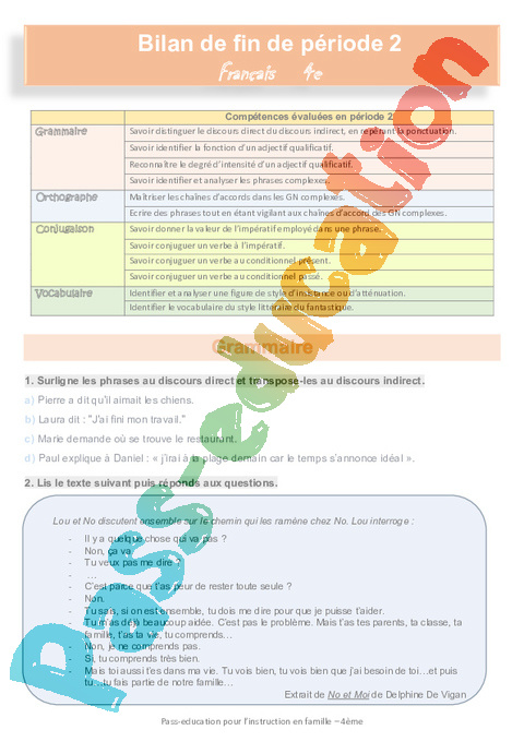 Bilan Période 2 français IEF : 2eme Secondaire pdf