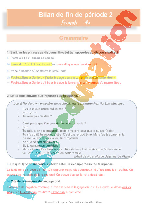 Correction Bilan Période 2 français IEF : 2eme Secondaire pdf
