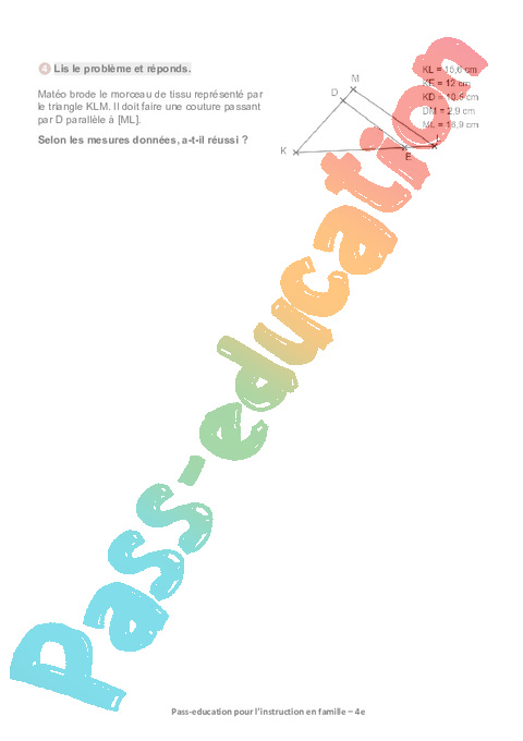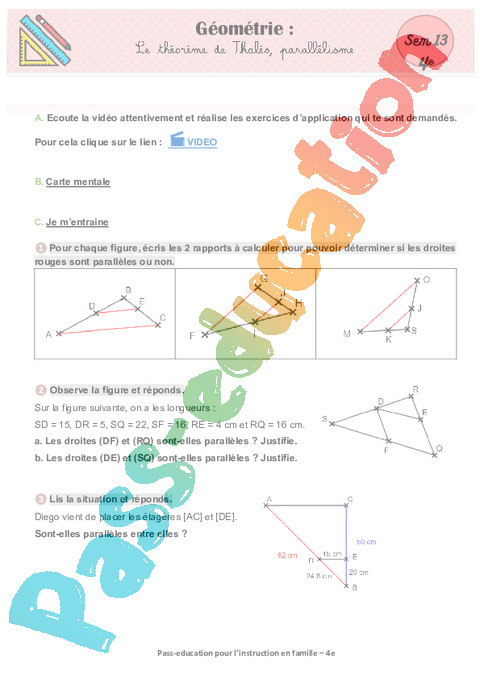 1 a Géométrie – Le théorème de Thalès et parallélisme Semaine 13 IEF : 2eme Secondaire pdf