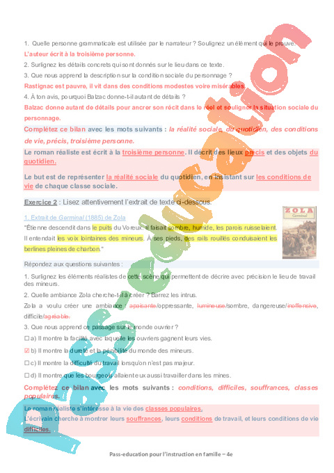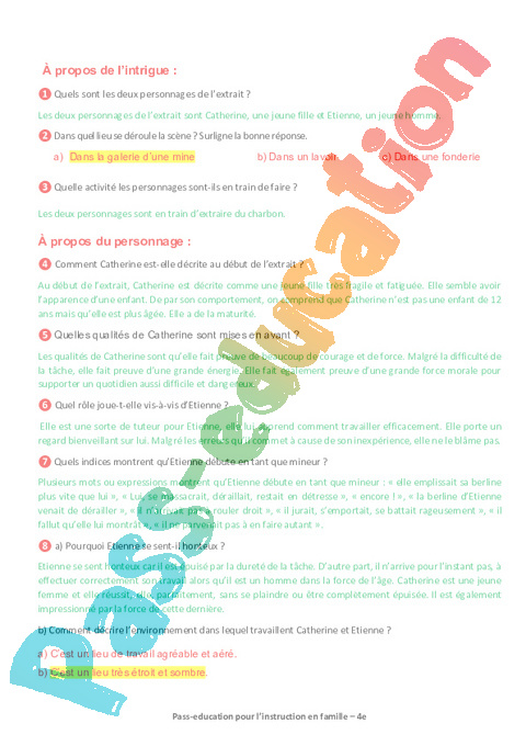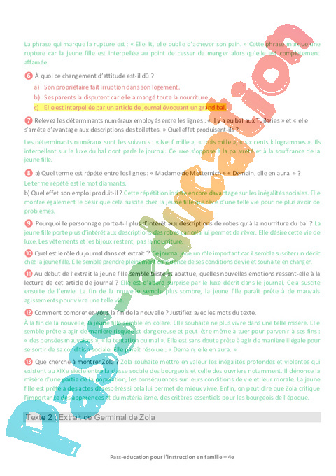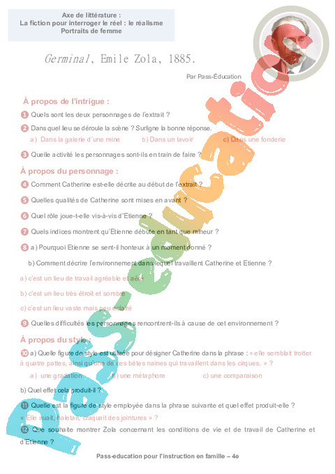 2b Questionnaire Germinal Zola Semaine 13 IEF : 2eme Secondaire pdf