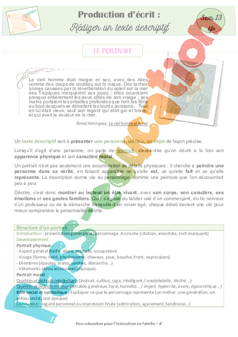 4 Expression écriture texte descriptif portrait Semaine 13 IEF : 2eme Secondaire pdf