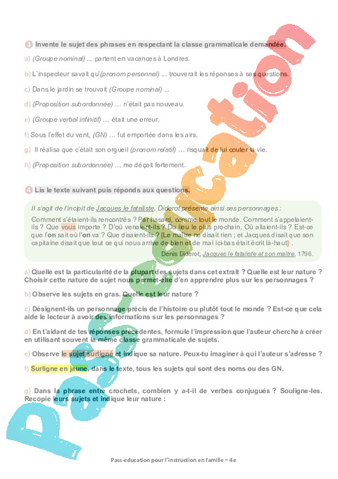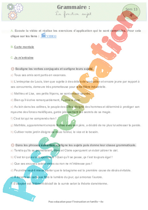 5 a- Grammaire – La fonction sujet Semaine 13 IEF : 2eme Secondaire pdf