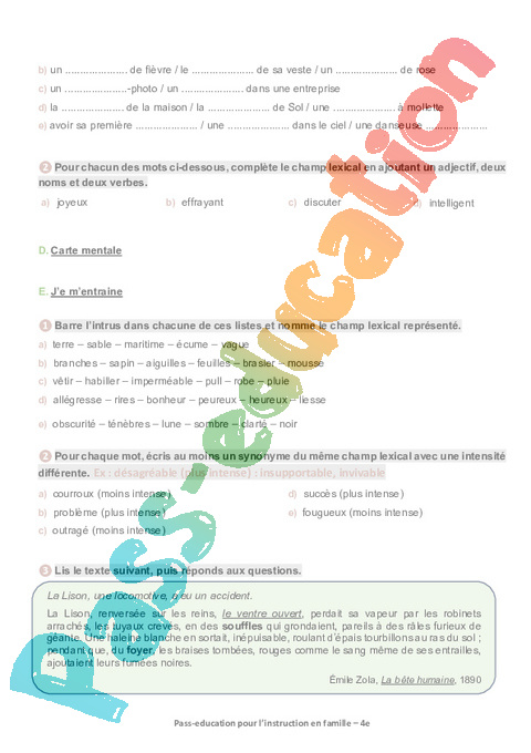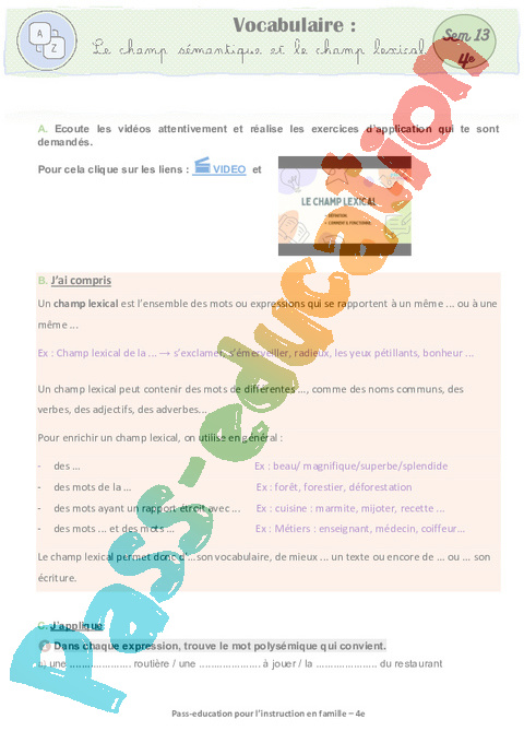 6 a Vocabulaire- Le champ sémantique et le champ lexical Semaine 13 IEF : 2eme Secondaire pdf