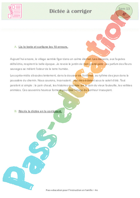 7 Dictée à corriger Semaine 13 IEF : 2eme Secondaire pdf